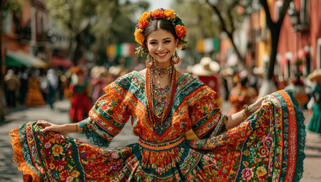 Vibrant Mexican Dancer in Traditional Dress Performing at Cultural Festival