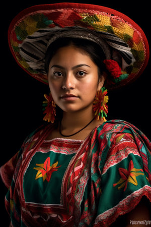 woman dressed in a mexican chiapas costume. generative ai. High quality illustration