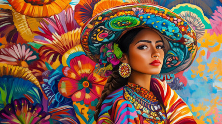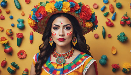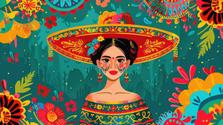 Photo Of Cinco De Mayo Woman With Colorful Traditional Symbols. Generative AI