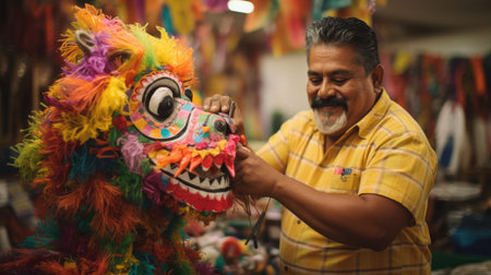 Mexican Piñata Artisan Creating Centerpiece for Celebrations