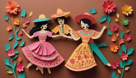 Photo Of Paper Cut Dancing Couple For Cinco De Mayo. Generative AI