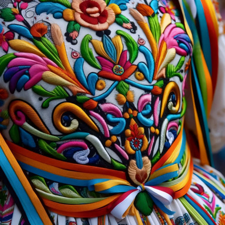Close-up of embroidered Puebla dress details, Ai generated image
