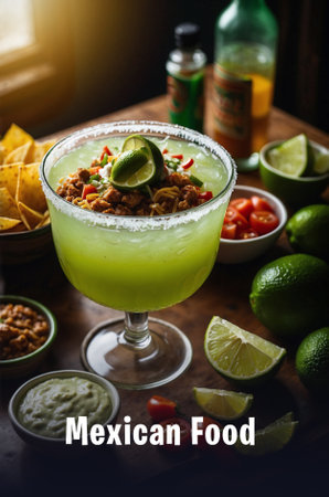 Mexican Food Tradicional Meal - A Modern food on table next to a green margarita glass
