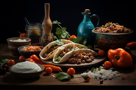 Savor a vibrant taco spread featuring fresh ingredients and rich flavors in a cozy setting.