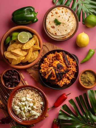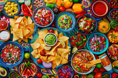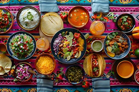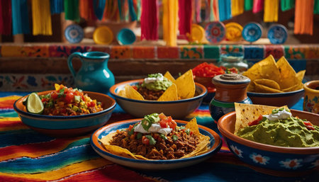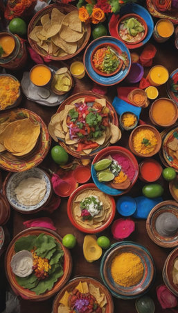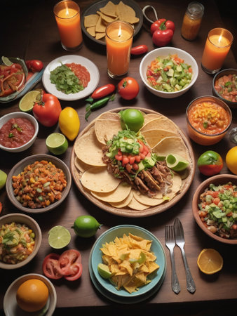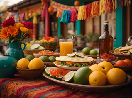 Mexican fiesta: Vibrant tablescape with traditional food and drinks