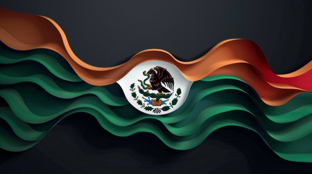 mockup of the Mexican flag with paper layers, creating a wave-like effect against a dark background.