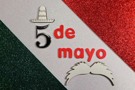 Cinco De Mayo With Moustache And Sombrero On Mexican Colors