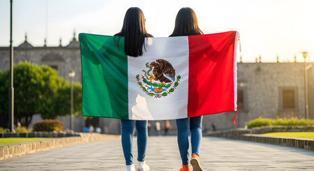 mexican friends at independence day in Mexico holding a flag of mexico