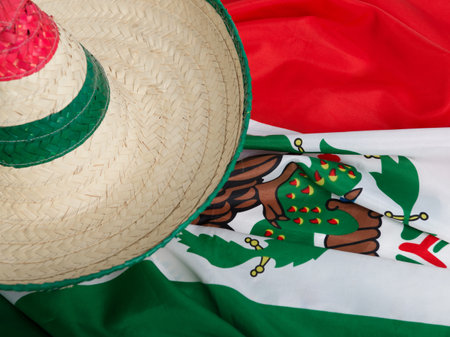 Mexican hat on the Mexican flag. Patriotic symbol. Copy space.