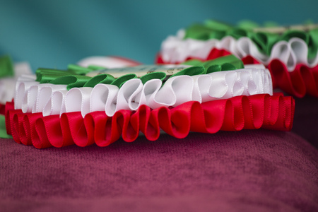 Mexican flag on white background, closeup