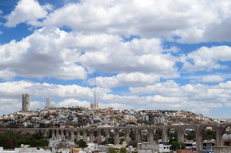 View to aqueduct and cityline of Queretaro city