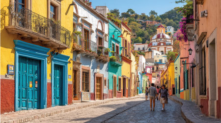 colorful street of Guanajuato city in Mexico. High quality photo