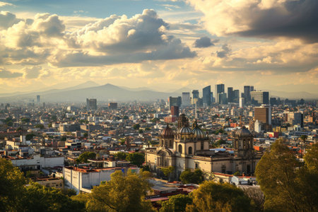 The skyline of Mexico City amidst a bustling day. AI generated