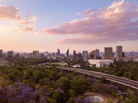 Mexico city aerial view of Chapultepec park sunset scene