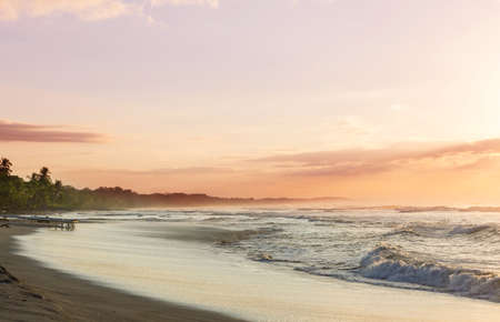 Beautiful sunset on the beach of the Caribbean Sea in Dominican Republic