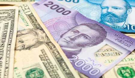 Close up view of American dollars and Turkish lira banknotes.