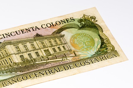 50 Costa Rican colones bank note. Colones is the national currency of Costa Rica