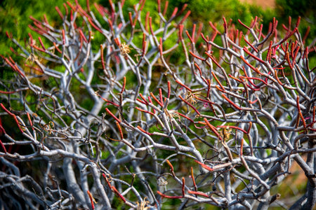 Extremely spiny bushes with branches in different depth of field levels, selective focus, abstract background image