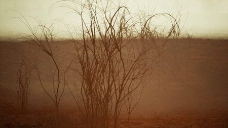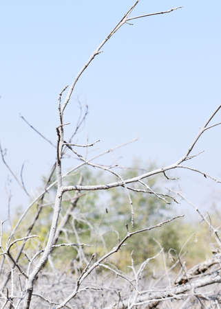Dead trees Bushes Isolated on blurred nature Background.