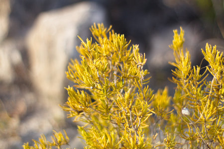 Close-up of the medicinal wild rosemary plant that grows in the dry mountains of Murcia