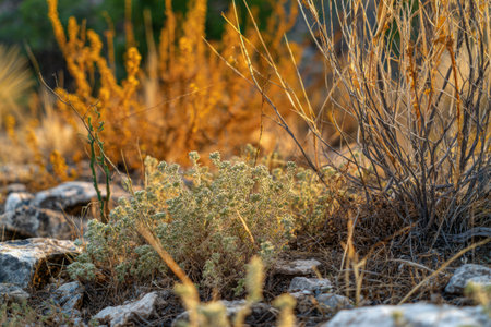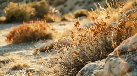 close up of dried plants in autumn in the desert