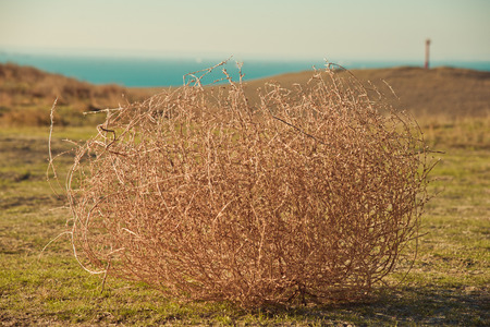 dry grass prickly tumbleweed field on nature