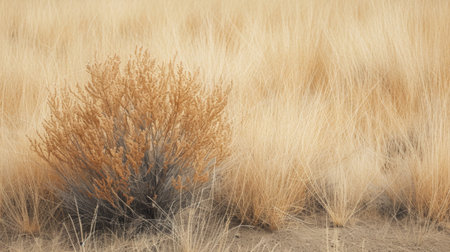 tumbleweed caught on a stark desert plant, created with generative ai