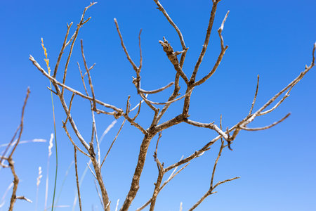 Dried branches of broom on blue sky