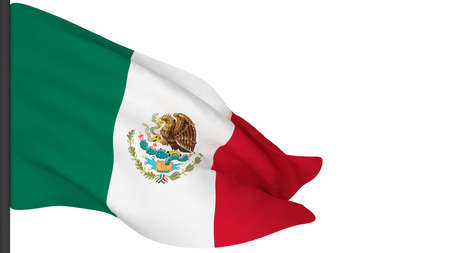 Mexico flag blowing in the wind isolated on white background. Official patriotic abstract design. 3d rendering illustration of waving sign symbol.