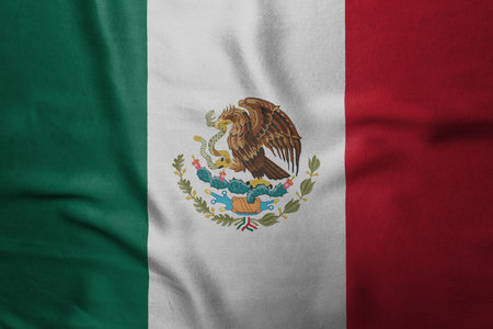Mexican national official flag. Patriotic symbol, banner, element, background. Accurate dimensions. Correct size, colors. Flag of Mexico waving in the wind with detailed fabric texture