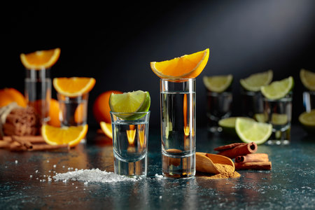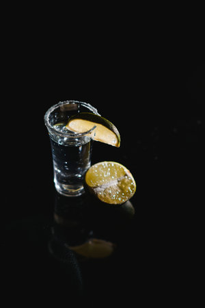 tequila with lime on a dark background