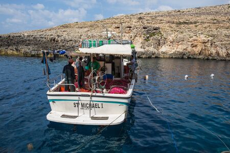 Comino, Malta - 30 October 2017: tourist boat is landing at the island of Comino on Malta