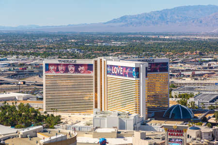 LAS VEGAS, USA - MARCH 29, 2020: Panoramic aerial view of The Mirage Hotel and Casino in Las Vegas, Nevada, USA