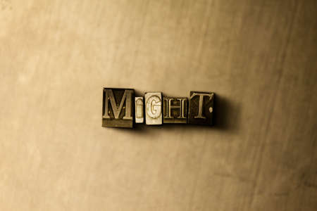 MIGHT - close-up of grungy vintage typeset word on metal backdrop. Royalty free stock illustration. Can be used for online banner ads and direct mail.