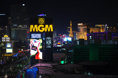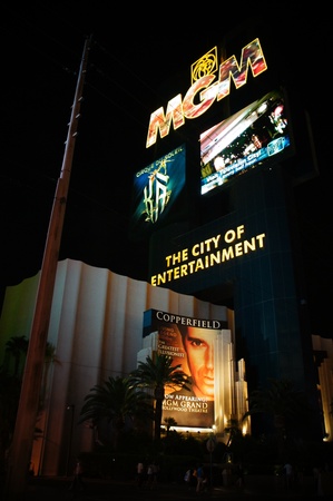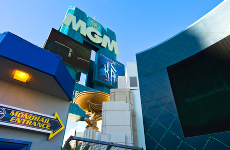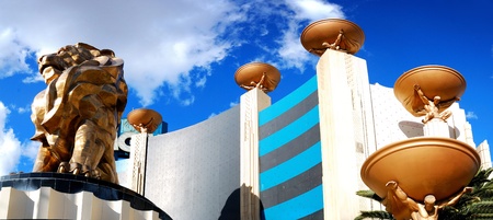 MGM Grand Las Vegas resort featuring Leo , the MGM lion. The hotel and casino complex is located on the Las Vegas strip.