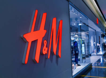 NEW YORK - CIRCA MARCH 2016: Times Square H&M store at night. H & M Hennes & Mauritz AB is a Swedish multinational retail-clothing company, known for its fast-fashion clothing for men, women, teenagers and children.