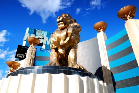 LAS VEGAS - MAR 4: Brass lion statue of MGM Grand Hotel, the second largest hotel in the world and second largest hotel resort complex in the United States, March 4, 2010 in Las Vegas, Nevada.