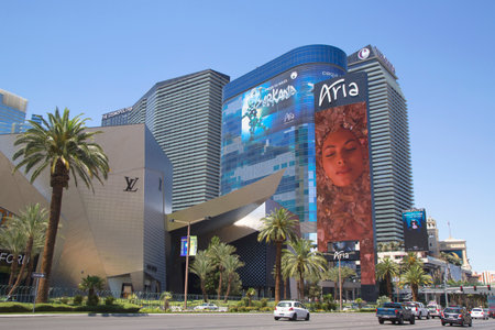 LAS VEGAS, NEVADA - MAY 10, 2014: Aria Resort and Casino at Las Vegas Strip. Aria Resort and Casino is a luxury resort and casino, part of the CityCenter complex on the Las Vegas Strip