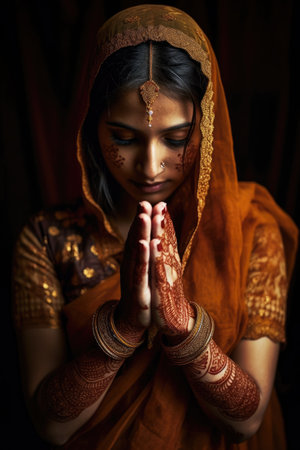 One young woman holding elegant henna bracelet, celebrating Indian culture generated by artificial intelligence