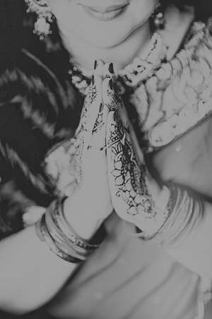 Hindu God Ganesha, closeup of hands with henna tattoo