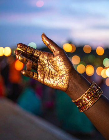 Intricate Hand of a Dancer Adorned with Henna and Jewelry at Maha Shivaratri Celebration. Concept of Cultural Traditions, Spiritual Festivities.