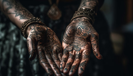 Ornate henna tattoo decorates bride elegant hand generated by artificial intelligence