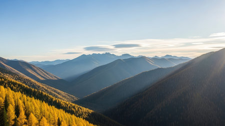 Panoramic view of the mountain range at sunset, Siberia, Russia