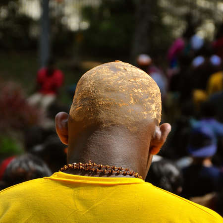 Portrait of an African man with a necklace on his head