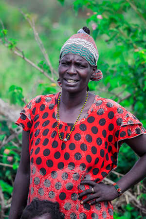 Jinka, Ethiopia, Febrauary 13, 2013: african woman, of the Samai ethnic group, with tribal tattoos on the face is going to the village