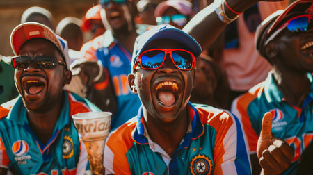 Namibian cricket aficionados, dressed in Indian cricket team jerseys