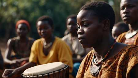 AI Generated. African people playing traditional music with djembe