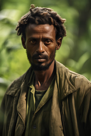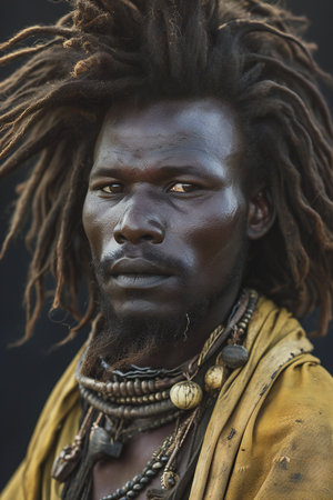 Portrait of a young African man with dreadlocks in the traditional clothes