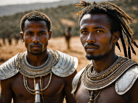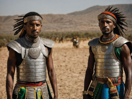 photo of african man tribal warriors with armor, generative AI