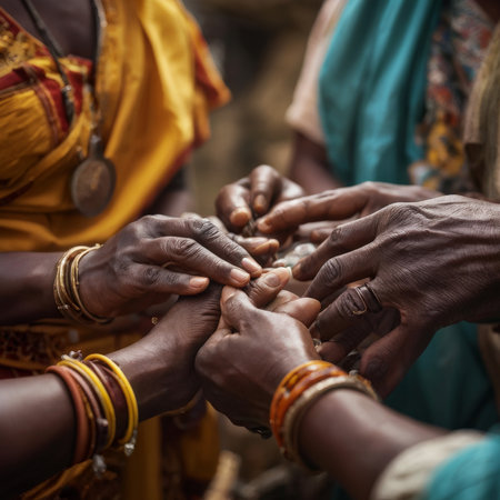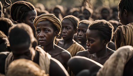 A photograph capturing a crowd of people, committed women and children, looking intently at something beyond the frame. The image showcases a sense of togetherness and community.